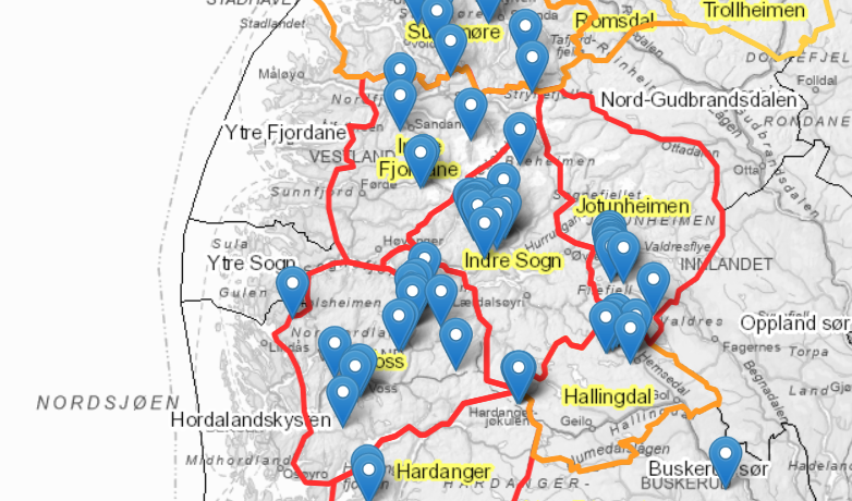 Raudt snøskredvarsel for Indre Sogn og kringliggjande regionar