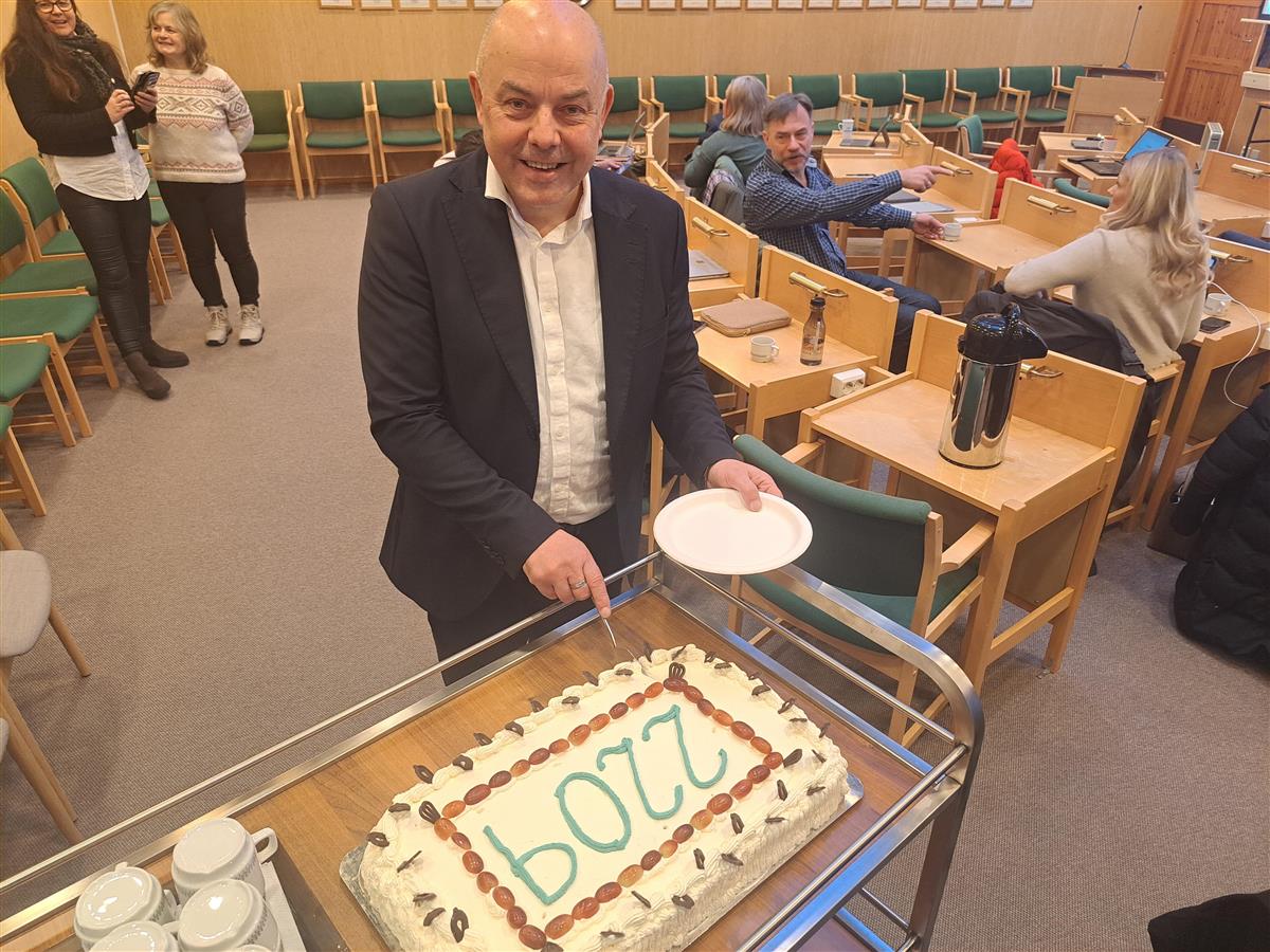 Ordførar Audun Mo bestilte kake då folketalet i Lærdal bikka 2200 - men talet var kome opp i 2209 allereie då første kommunestyremøte vart halde etter at me bikka 2200. Det var i slutten av november, og ein dryg månad seinare, ved årsskifte, var talet altså 2223.